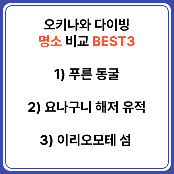 각 지역마다 난이도가 다르기 때문에 자신의 경험 수준에 맞춰 다이빙 포인트를 선택하면 더욱 안전하고 즐거운 여행이 될 것입니다. 오키나와에서 잊지 못할 다이빙 경험을 만끽해보세요!