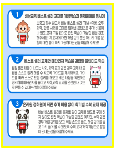 온리원, 비상교재 독점으로 완성된 사회·과학·수학 인강